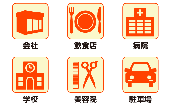 会社・飲食店・病院・学校・美容院・駐車場など、様々な場所に対応します。ぜひお気軽にご相談ください。